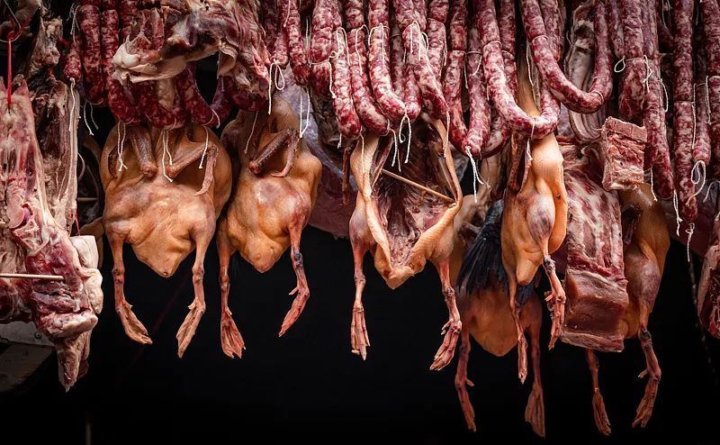 腊肉、香肠是经过加工后制得的传统肉制品。人们通常会将畜禽肉或其可食用副产品经过食盐、酱料、香辛料和食品添加剂等腌制,利用自然气候风干成熟、烟熏或烘烤干燥等工艺制作。