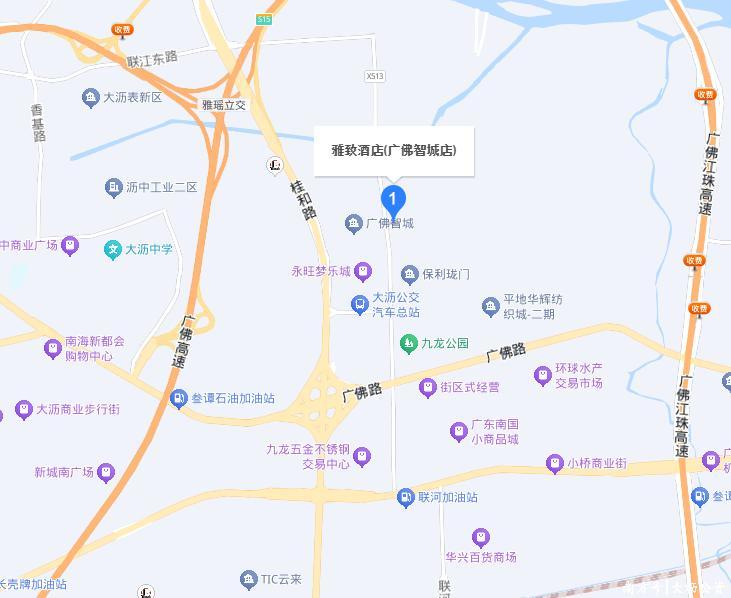 酒店位于佛山市南海区大沥镇广佛智城核心地带,坐拥灯湖中轴线优越位置,交通网络发达,出行极其便利。